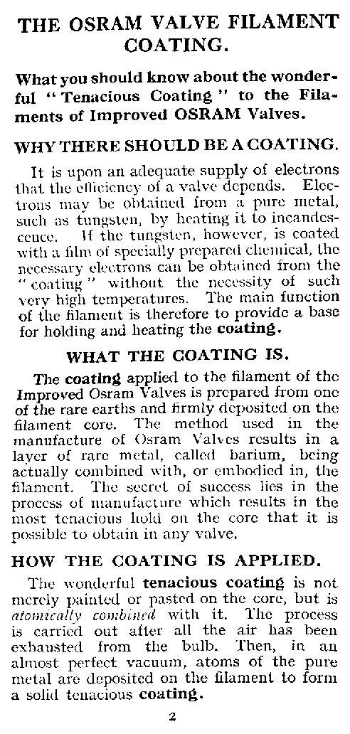 | Page 2 | The Osram valve filament coating |