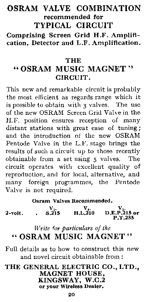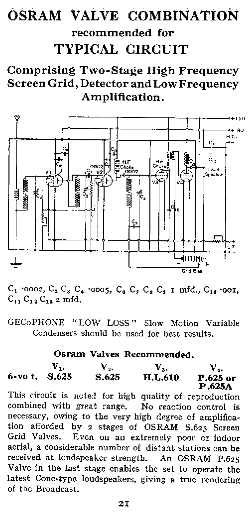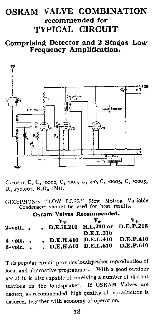 | Page 19 | Valves recommended for Typical circuit (HF, Det, 2 x LF) |