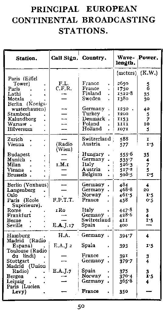 | Page 50 | Principal European Continental Broadcasting Stations |