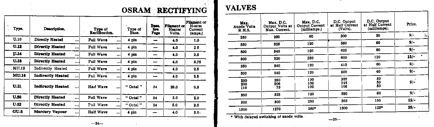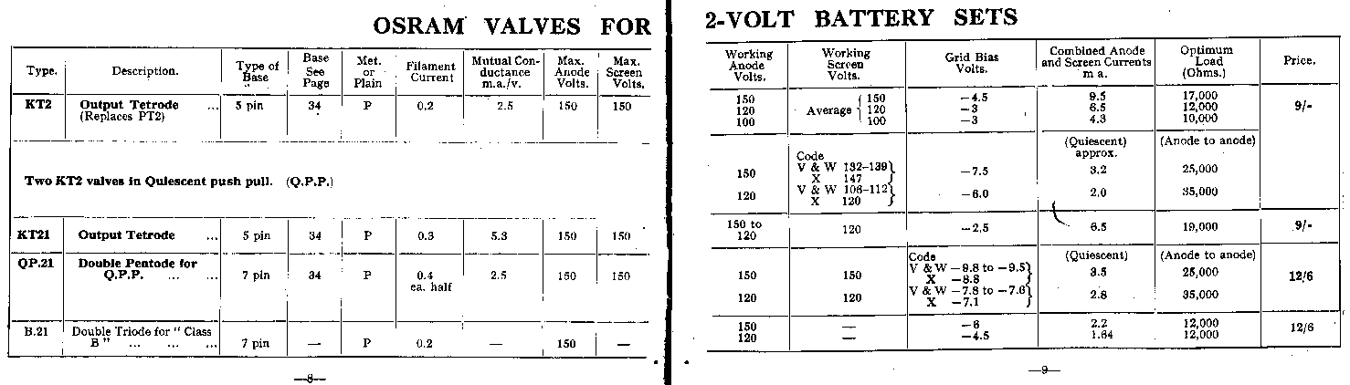 | Pages 20 & 21 | Valves for AC Sets (Octal Base) |