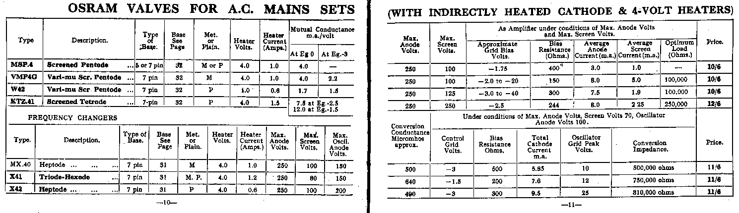 | Pages 10 & 11 | Valves for AC Sets (4V Heater) |