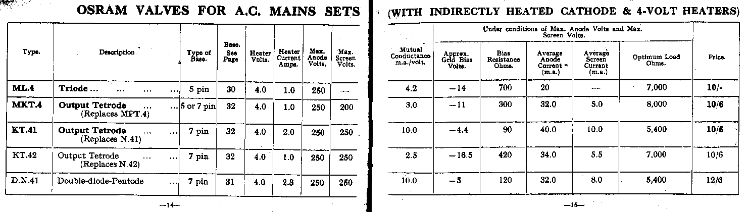 | Pages 14 & 15 | Valves for AC Sets (4V Heater) |