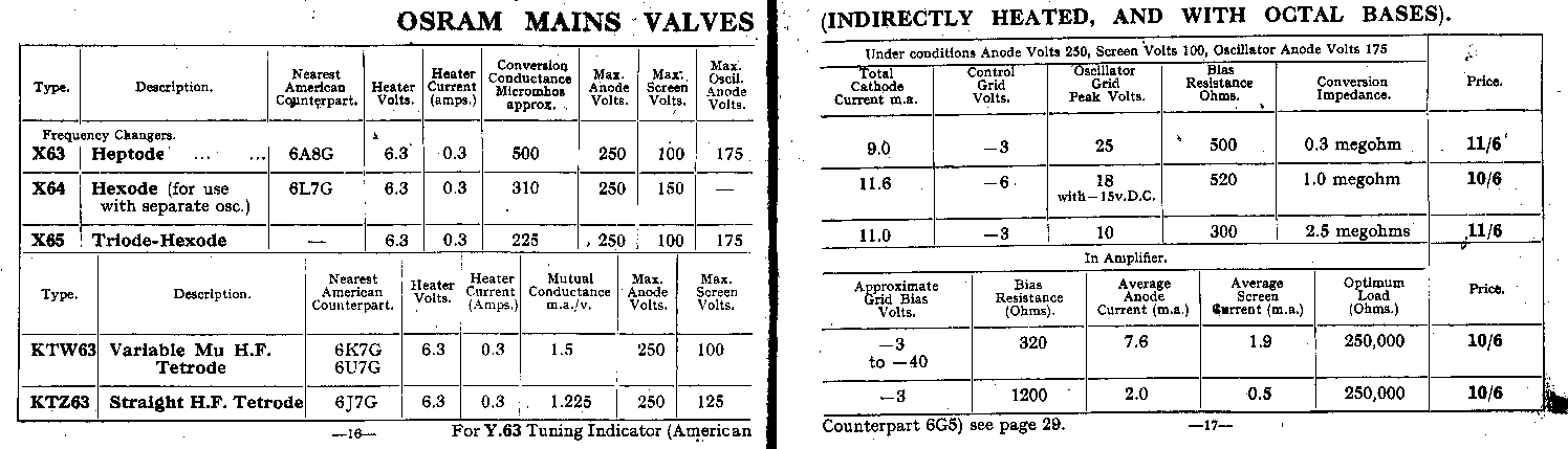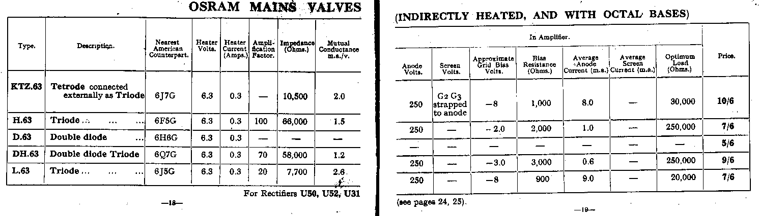 | Pages 16 & 17 | Valves for AC Sets (Octal Base) |