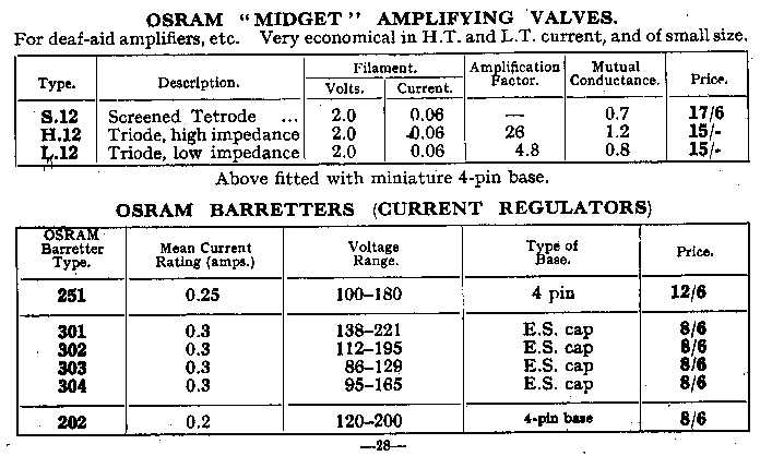 | Pages 28 | Midget Amplifying Valves, Barretters |