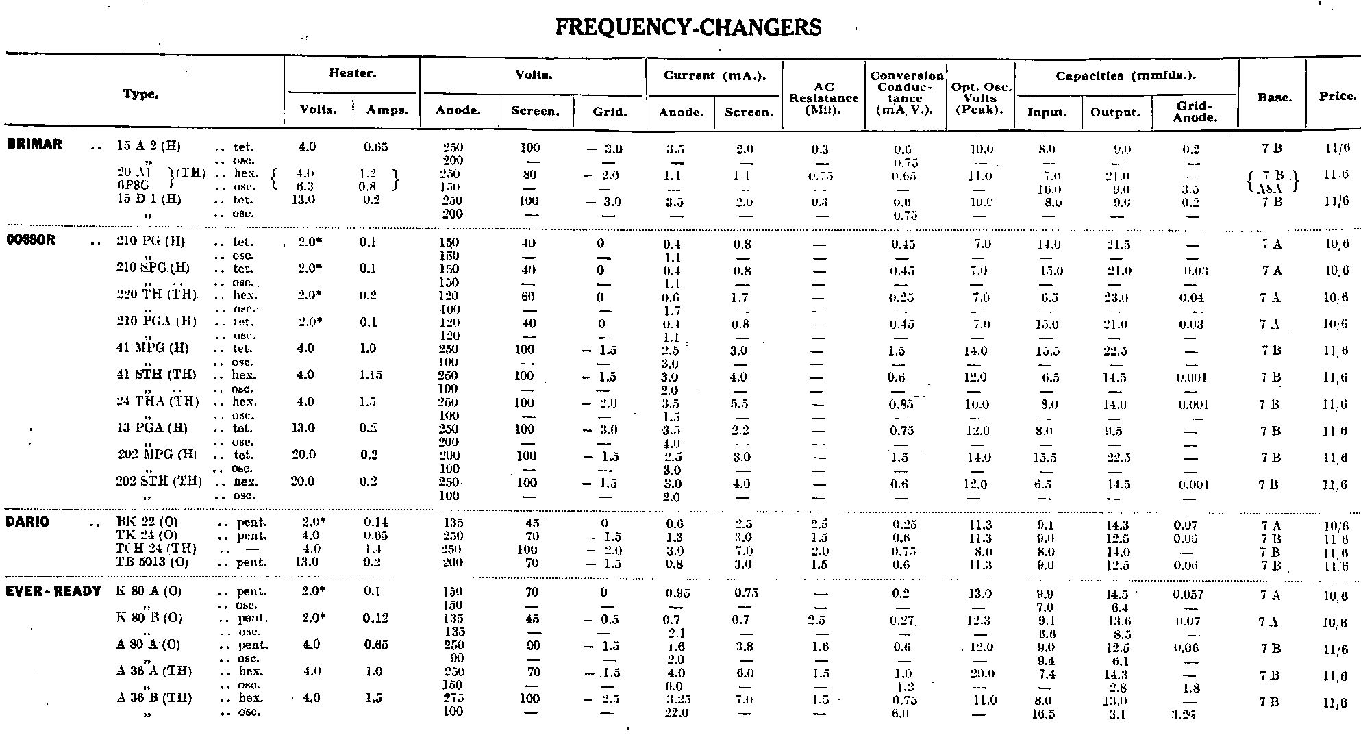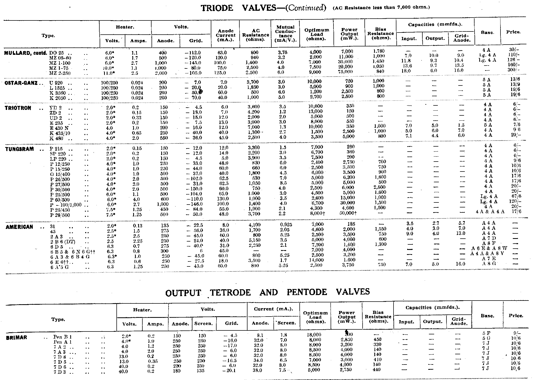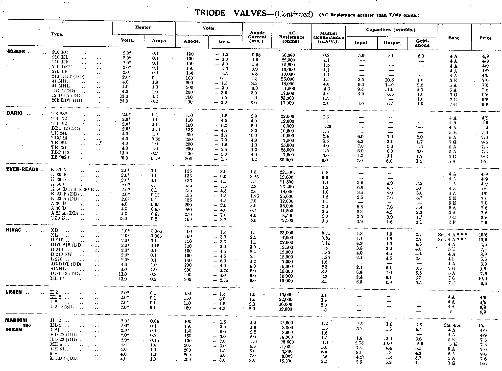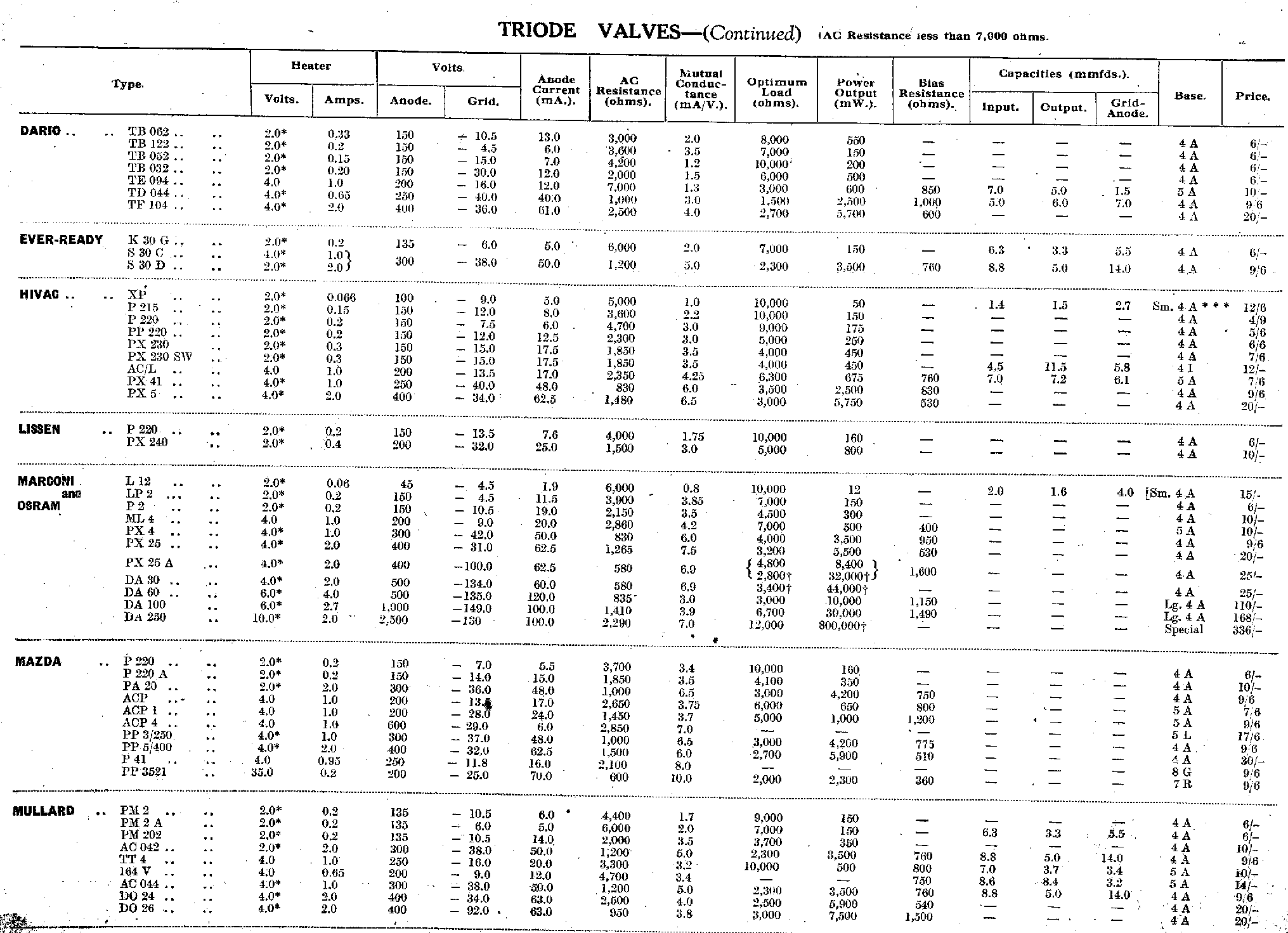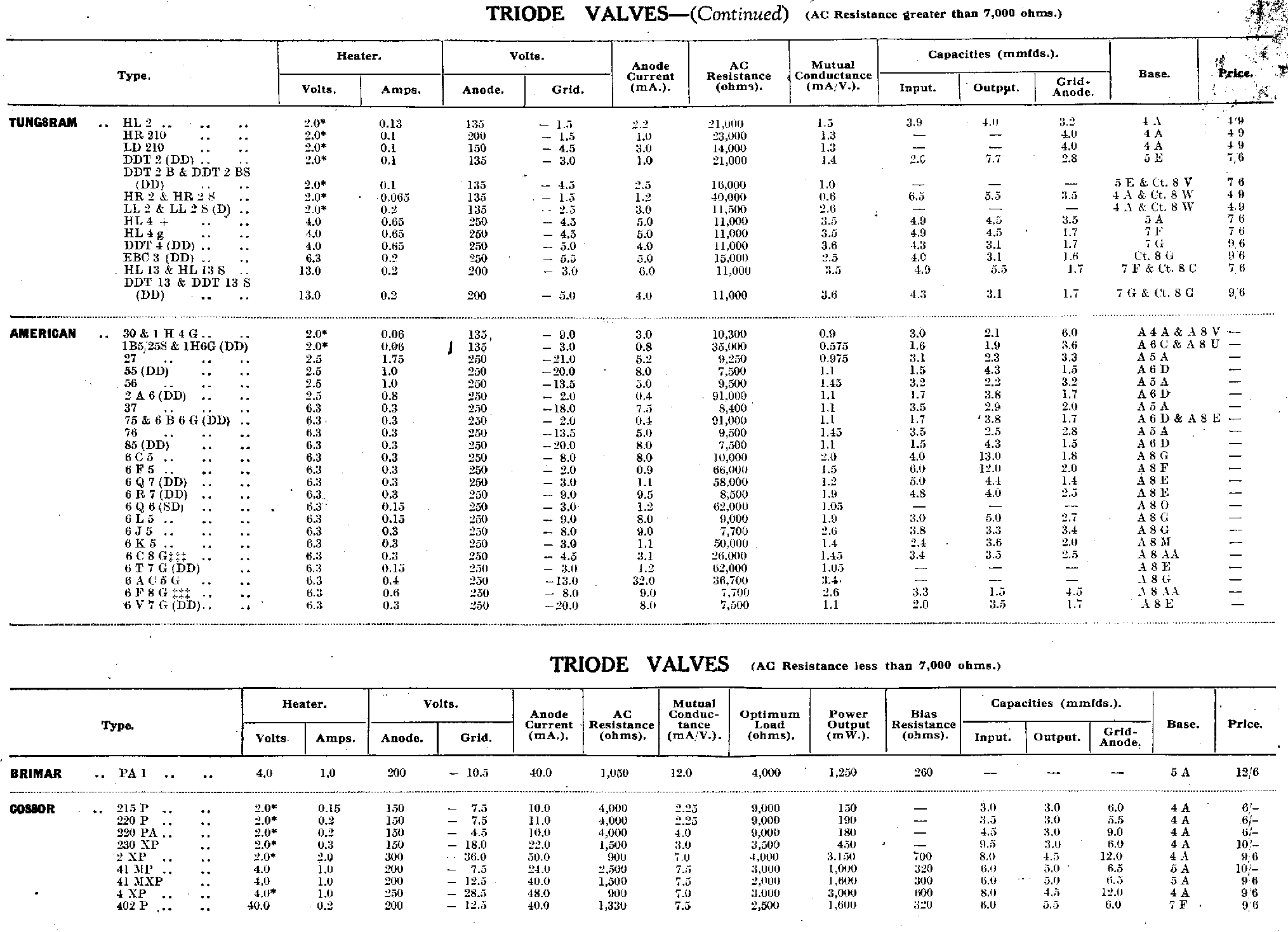 | Triode Valves (AC resistance less than 7,000 ohms) | |